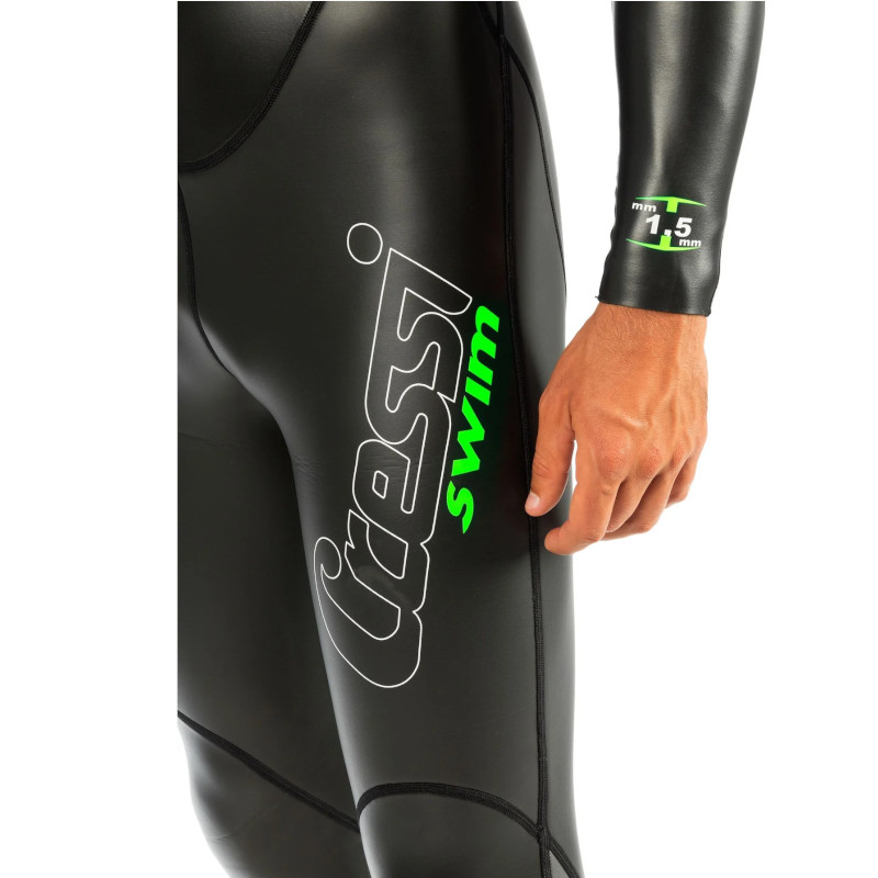 Cressi Triton je muško jednodijelno ronilačko odijelo izrađeno od 1,5 mm neoprena, pogodno za plivanje na otvorenim vodama. Cressi Triton koristi Cressijevo dugogodišnje iskustvo u dizajnu krojeva, proizvodnji i materijalima dobivenim iz njihovih odijela za ronjenje na dah i slobodno ronjenje. Njegov kroj optimizira udobnost i sprječava trenje, posebno na mjestima veće pokretljivosti. Ovo integralno jednodijelno odijelo posebno je dizajnirano za plivanje i ronjenje na dah, iako ga njegove tehničke značajke čine izvrsnom opcijom za ronjenje s bocama u toplim vodama. Izrađeno od 1,5 mm neoprena visoke gustoće, s glatkom vanjskom završnom obradom i Glide Skin vodootpornim tretmanom koji pruža iznimnu hidrodinamiku i dobru otpornost na kidanje. Unutarnji sloj je Ultrastretch©, izuzetno elastičan i gladak kako bi se spriječile ogrebotine. Ovratnik ima glatku neoprensku manžetu koja optimizira udobnost odijela, a istovremeno sprječava trenje. YKK metalni polu-zatvarajući patentni zatvarač s antikorozivnom obradom za idealnu izdržljivost. Glatki protiv glatkih “preklopa” za smanjenje propuštanja vode u području leđa. Sklop panela sastoji se od ravnih šavova s koncem protiv habanja.