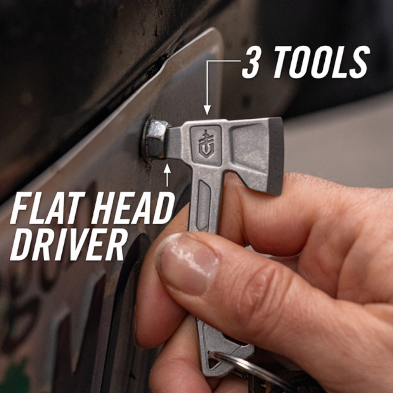 Kompaktan 3-u-1 višenamjenski alat u obliku mini sjekirice za vaš privjesak za ključe. Sadrži odvijač, otvarač paketa i otvarač boca. Savršen za svakodnevnu upotrebu i aktivnosti na otvorenom.