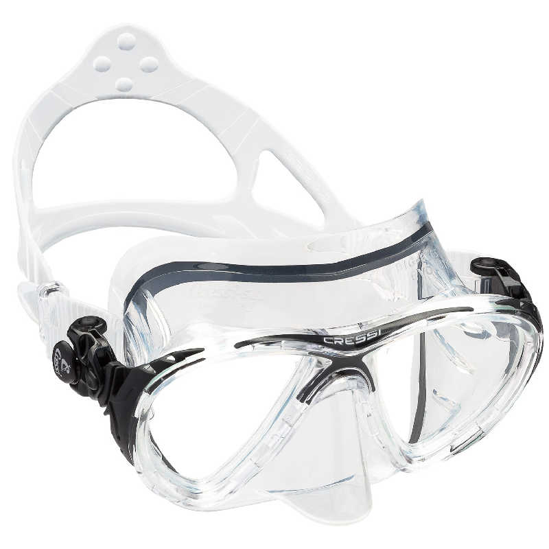 Maska Cressi Big Eyes Evolution ima leće u obliku suze koje su nagnute prema unutra i pružaju iznimno vidno polje. Leće maske Big Eyes Evolution, u obliku obrnute suze, nagnute su prema unutra i pružaju iznimno vidno polje s vrlo malim unutarnjim volumenom. Novi oblik silikonskog krila ima rebrastu unutrašnjost, što omogućuje bolje pristajanje i potporu. Maska ima ugrađene kopče za brzo otpuštanje za brzo podešavanje. Mogućnost ugradnje optičkih leća. Korekcija: -1,0 > -6,00.